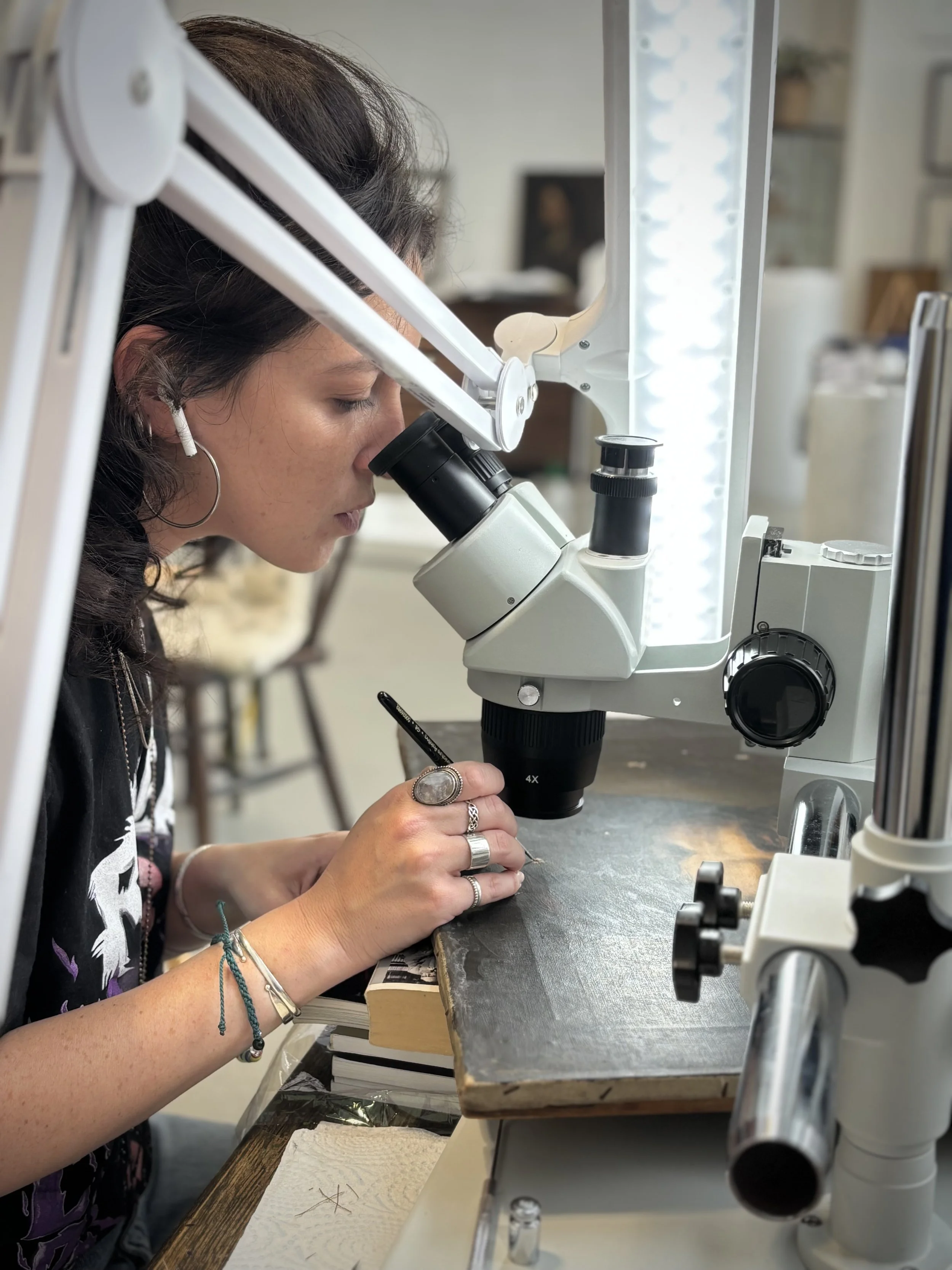 We work on many different types of paintings of various different sizes, age and mediums; canvas, wood, ivory and metal. Oil, acrylic, watercolour, mixed media. We use the most appropriate methods and techniques to restore and conserve each individual piece. We can take care of your artwork from a light surface clean to complete varnish removal, repairing tears, consolidating cracking, levelling and retouching losses and relining your canvas. Our expansive space at the London studio allows us to take in very large artwork and we also benefit from having an incredible amount of natural light to work under. Please do get in touch if you would like to talk about the restoration and conservation of your artwork